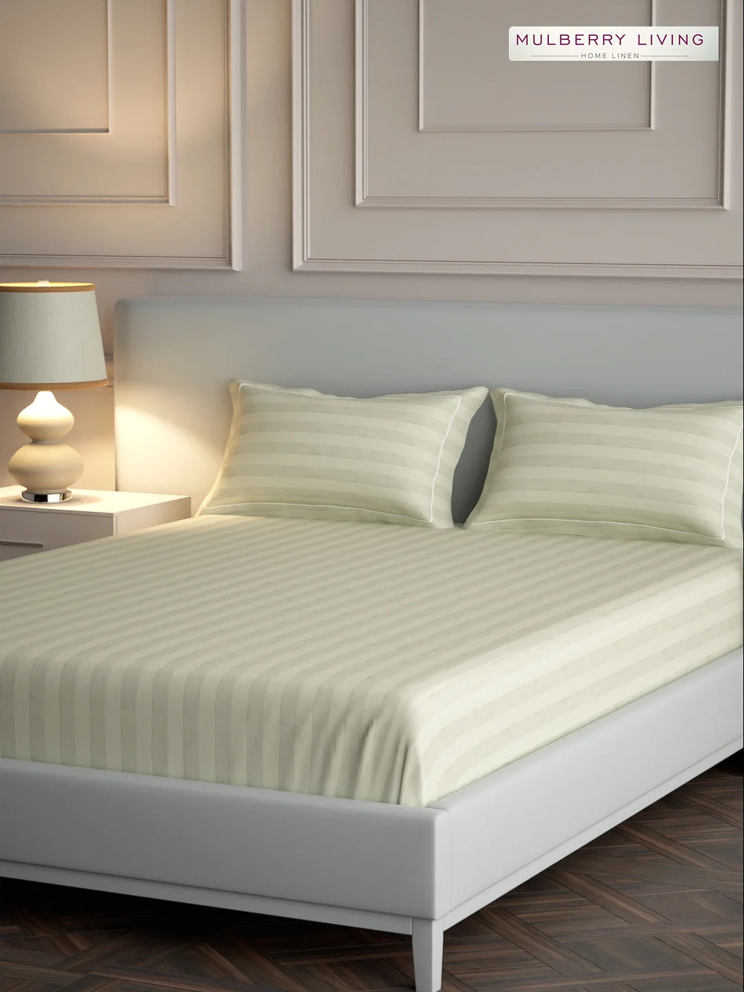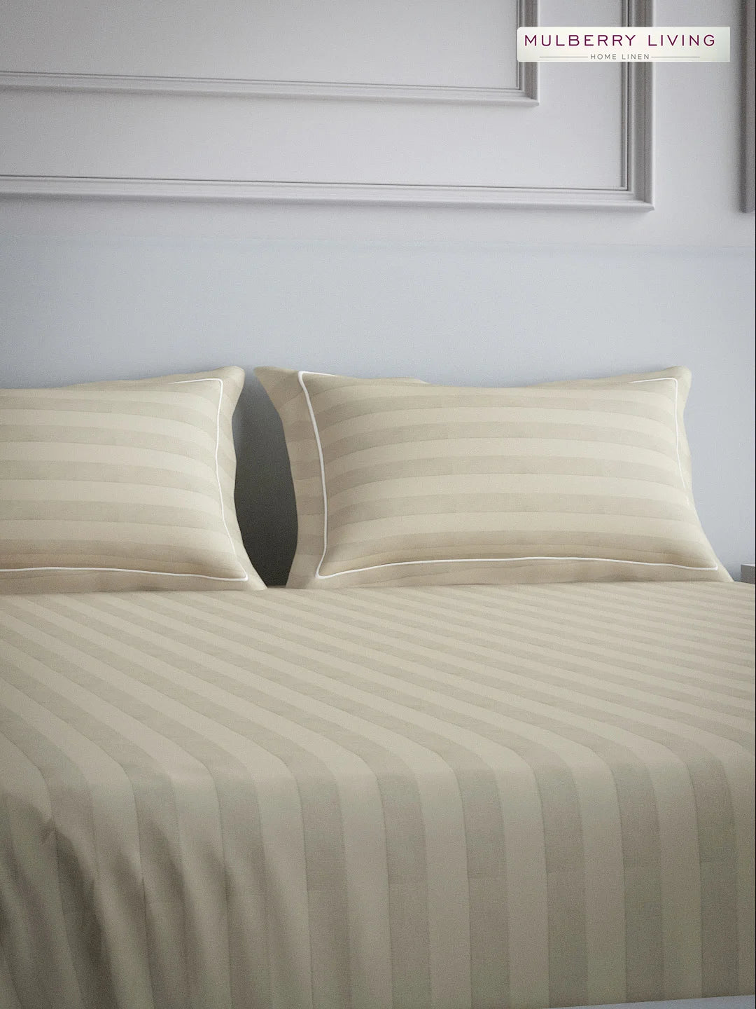 Elysian Stripes 100% Cotton Bedsheet Set with 2 Pillow Covers - 300TC