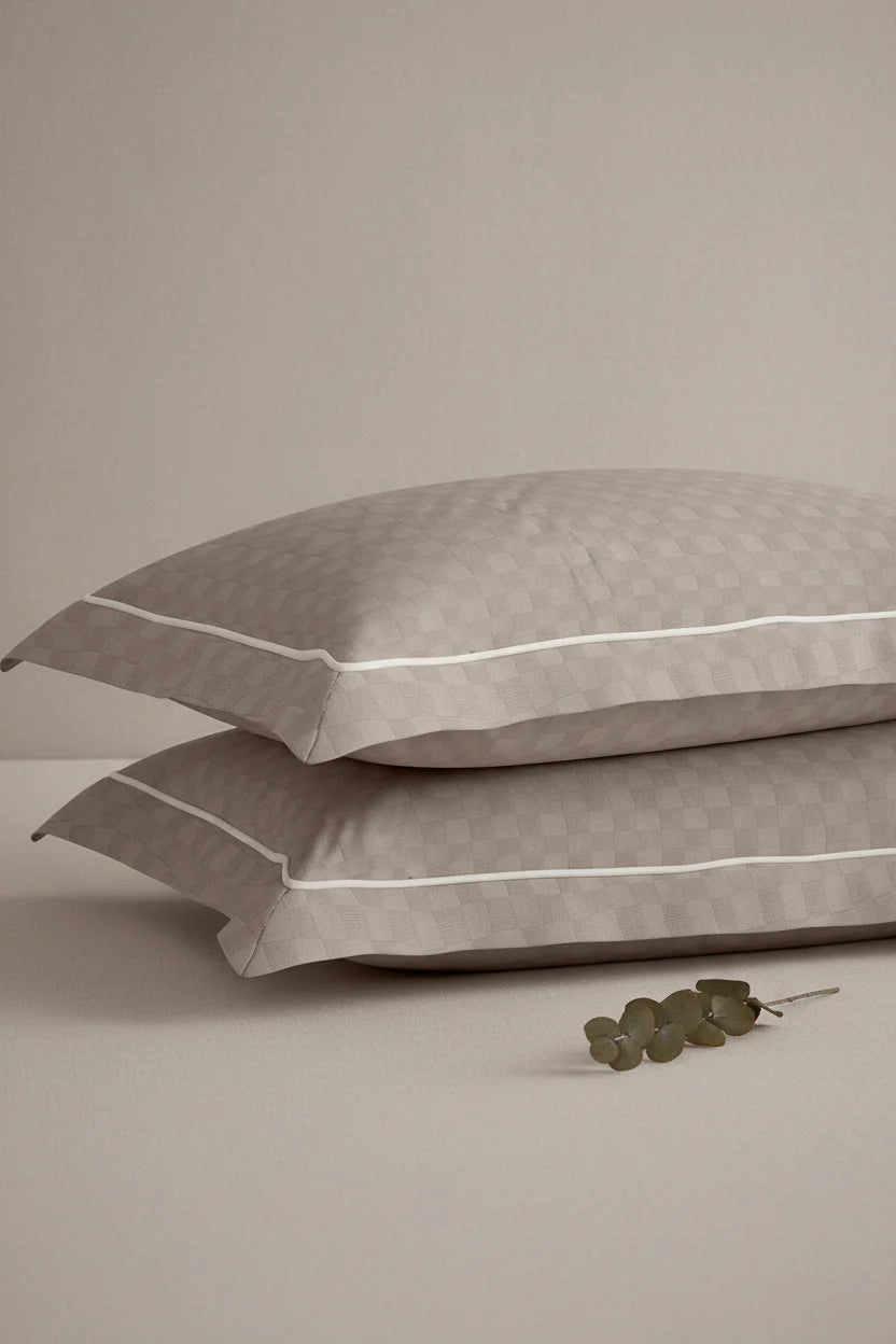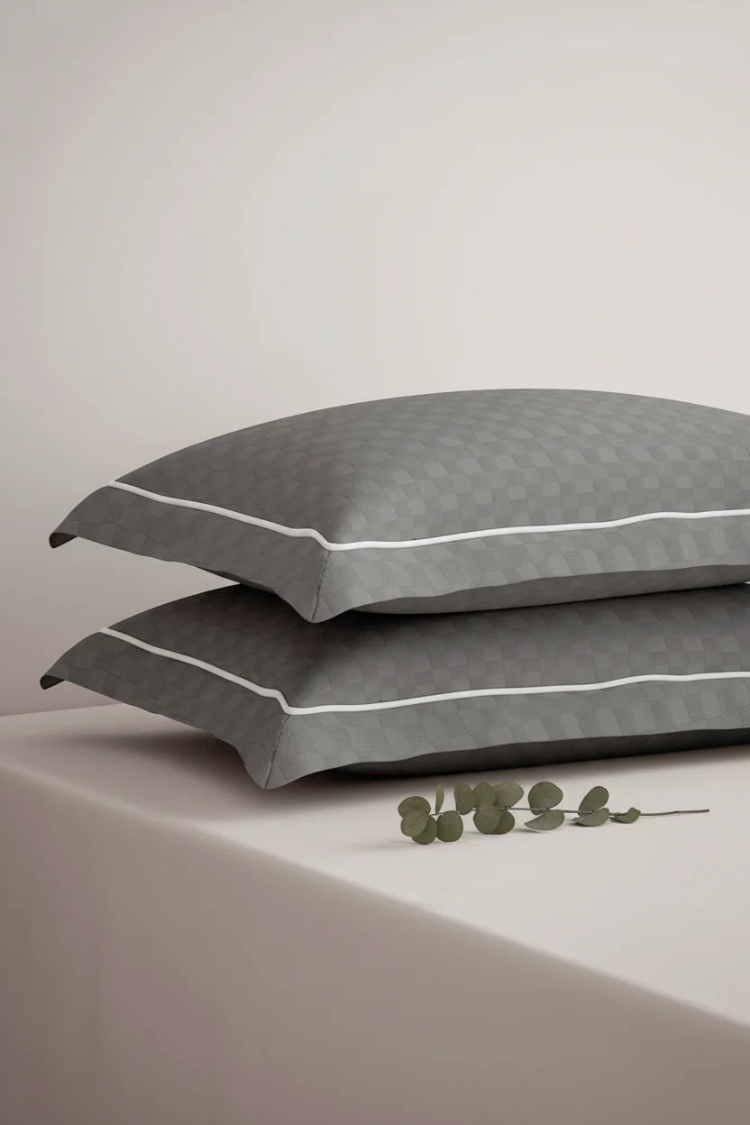 Experience modern elegance with our Urban Grid Pillow Covers. This refined set of two features a sophisticated checkered pattern on premium 100% cotton fabric with a luxurious 300 thread count. The crisp white design complements contemporary décor while providing exceptional breathability and softness. Transform your bedroom into a sanctuary of understated sophistication with these fine quality pillow covers.