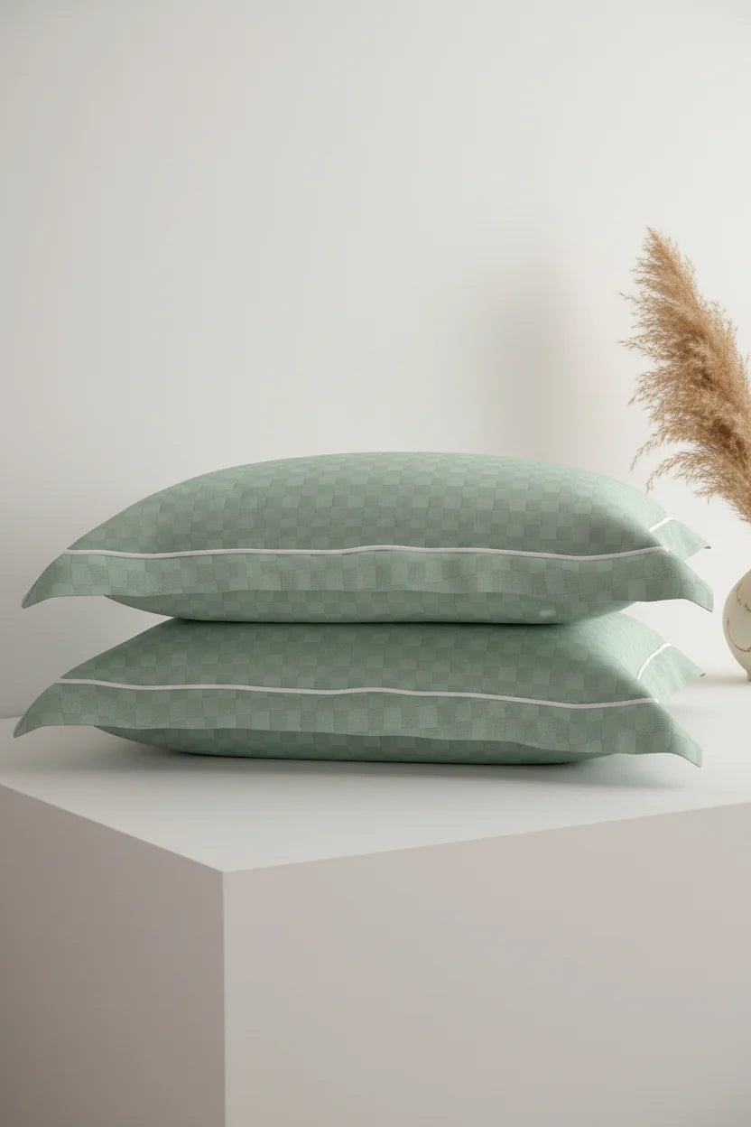 Urban Grid Pillow Covers (Set of 2) - 100% Cotton, 300TC, Ultra-Soft & Breathable